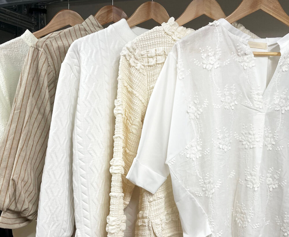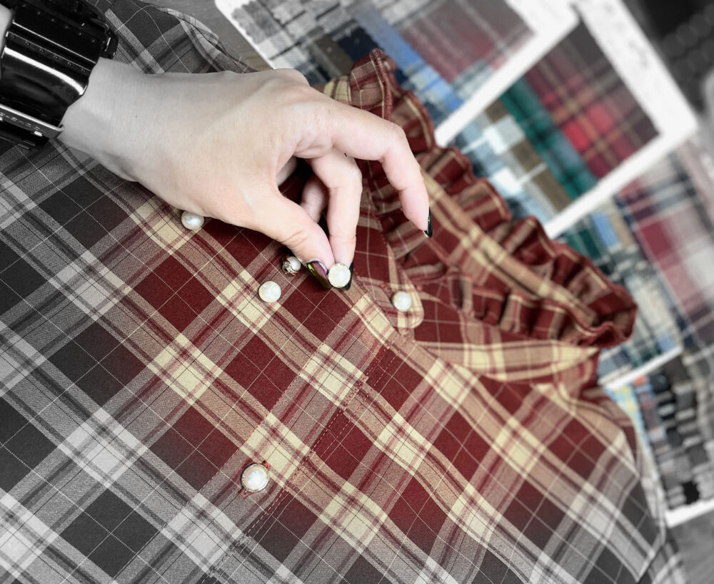 パターン制作、縫製、装飾、品質管理など、製造のさまざまな段階にわたる管理力を活用し、製造から店頭までを見据えたアパレル製品を提案しています。